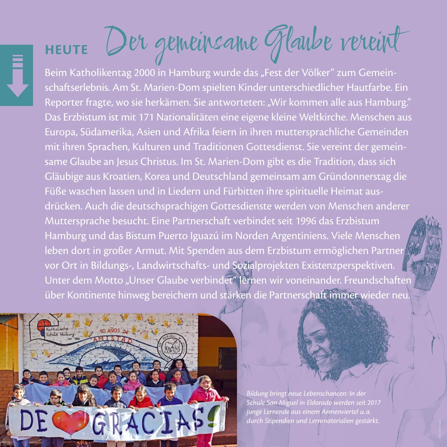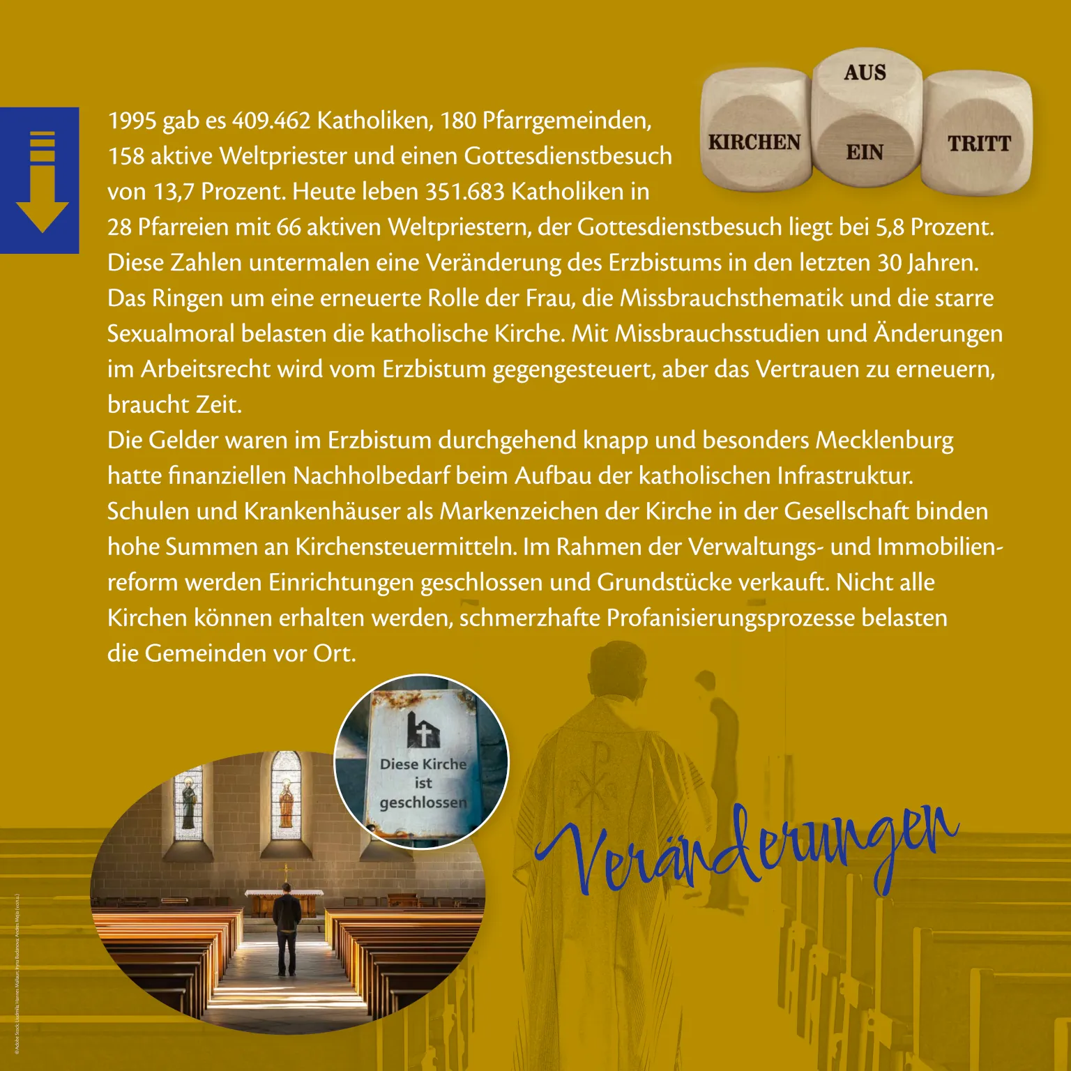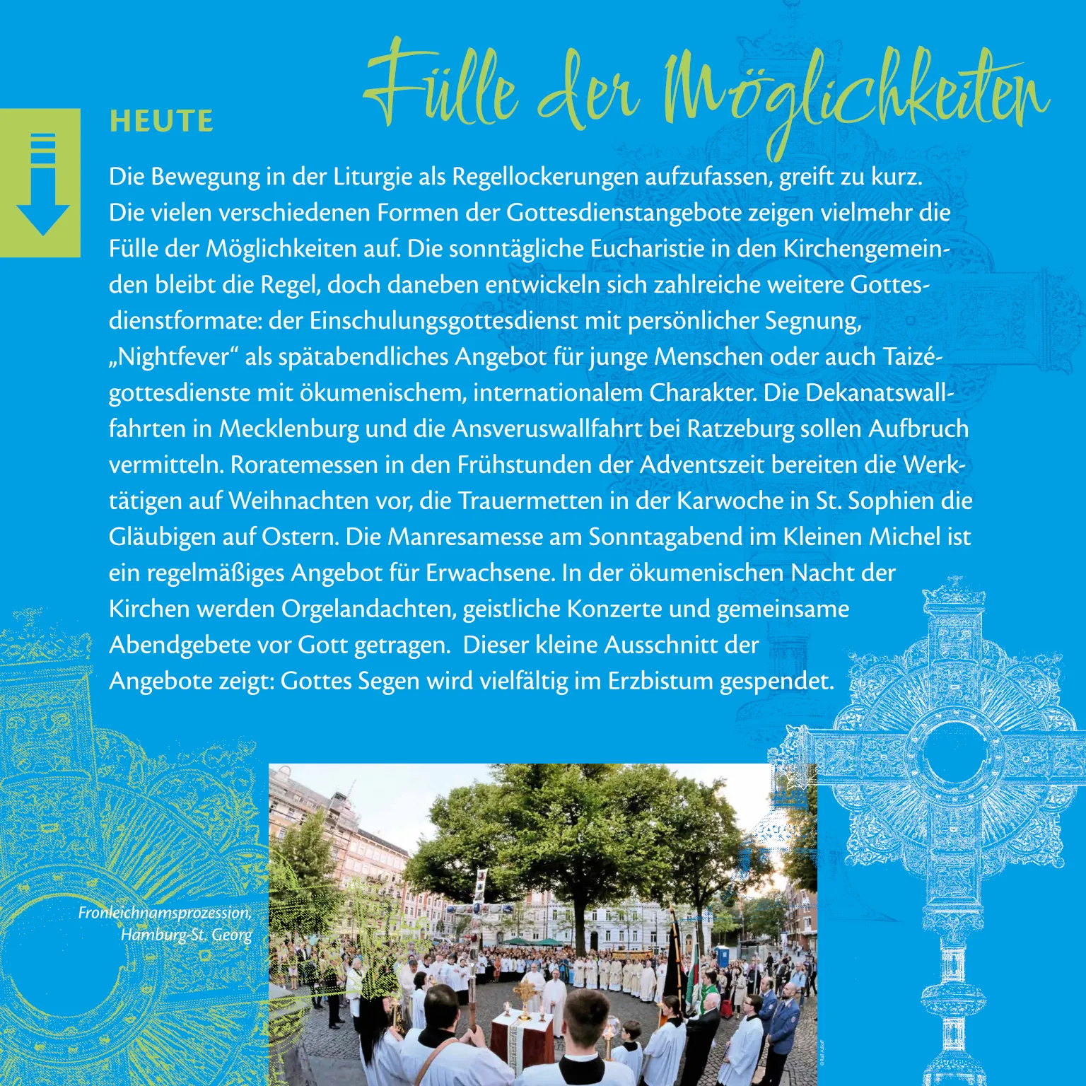 Aus diesem Anlass haben wir aktive und ehemalige Mitarbeitende und ehrenamtlich engagierte Katholikinnen und Katholiken gebeten, ein paar Highlights der Bistumsgeschichte zu kommentieren: Dazu gehören neben der Bistumsgründung 1995 der Katholikentag, der im Jahr 2000 in Hamburg stattgefunden hat, die Seligsprechung der Lübecker Märtyrer im Jahr 2011 oder auch die Bischofsweihe von Erzbischof Dr. Stefan Heße 2015.